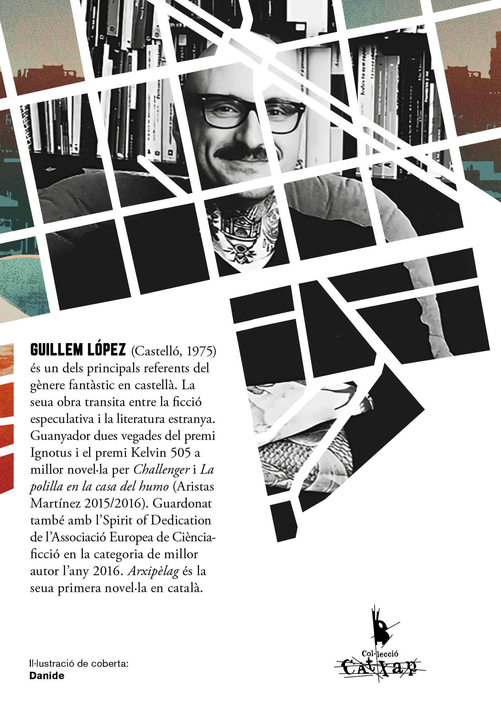 Guillem López (Castelló, 1975) (@Guillemmolamil) és un dels principals referents del gènere fantàstic en castellà. La seua obra transita entre la ficció especulativa i la literatura estranya. Guanyador dues vegades del premi Ignotus i el premi Kelvin 505 a millor novel·la per Challenger i La polilla en la casa del humo (Aristas Martínez 2015/2016). Guardonat també amb el Spirit of Dedication de l’Associació Europea de Ciència-ficció en la categoria de millor autor l’any 2016. Arxipèlag és la seua primera novel·la en català.