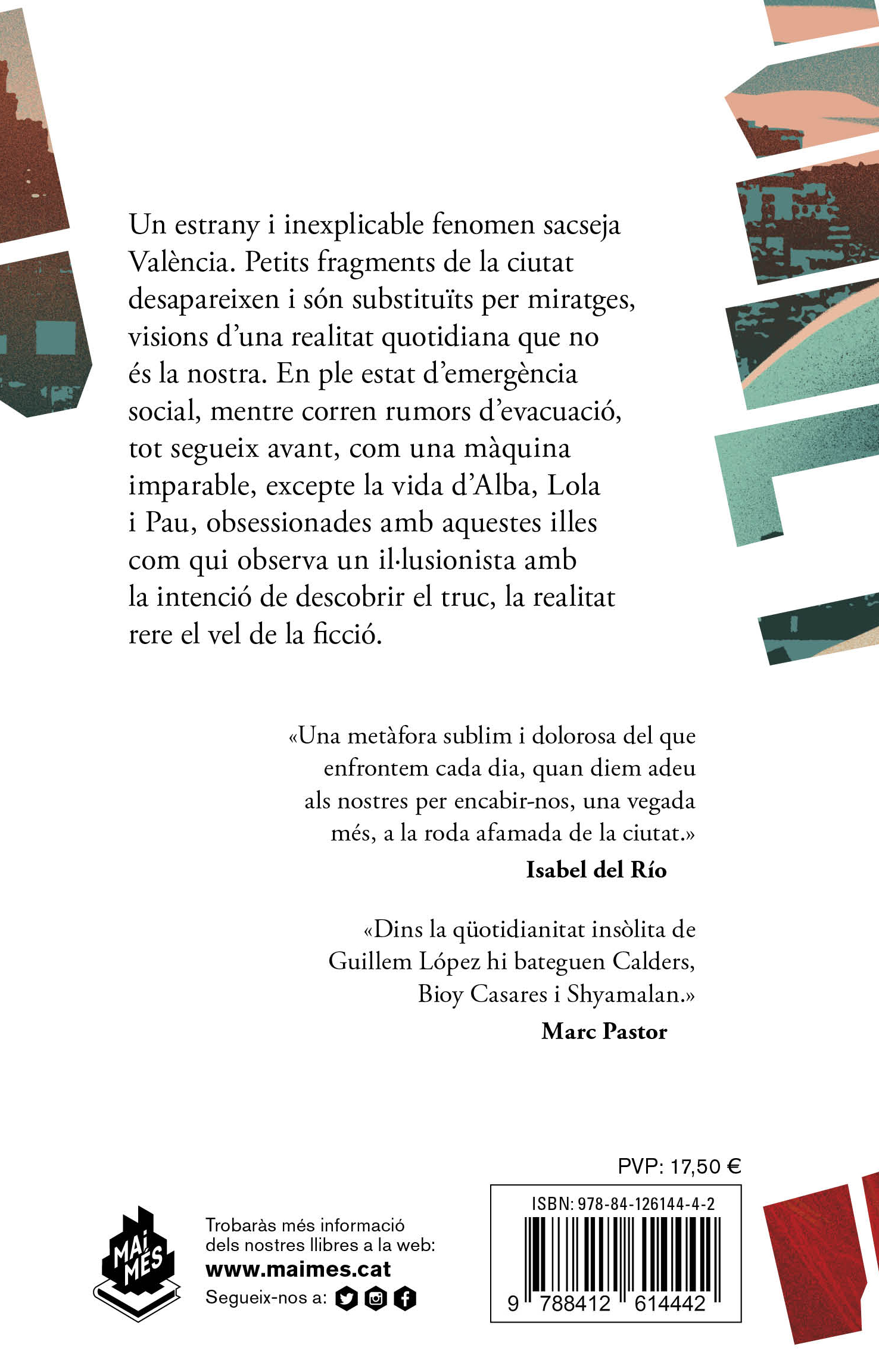 Un estrany i inexplicable fenomen sacseja València. Petits fragments de la ciutat desapareixen i són substituïts per miratges, visions d’una realitat quotidiana que no és la nostra. En ple estat d’emergència social, mentre corren rumors d’evacuació, tot segueix avant, com una màquina imparable, excepte la vida d’Alba, Lola i Pau, obsessionades amb aquestes illes com qui observa a un il·lusionista amb la intenció de descobrir el truc, la realitat rere el vel de la ficció.