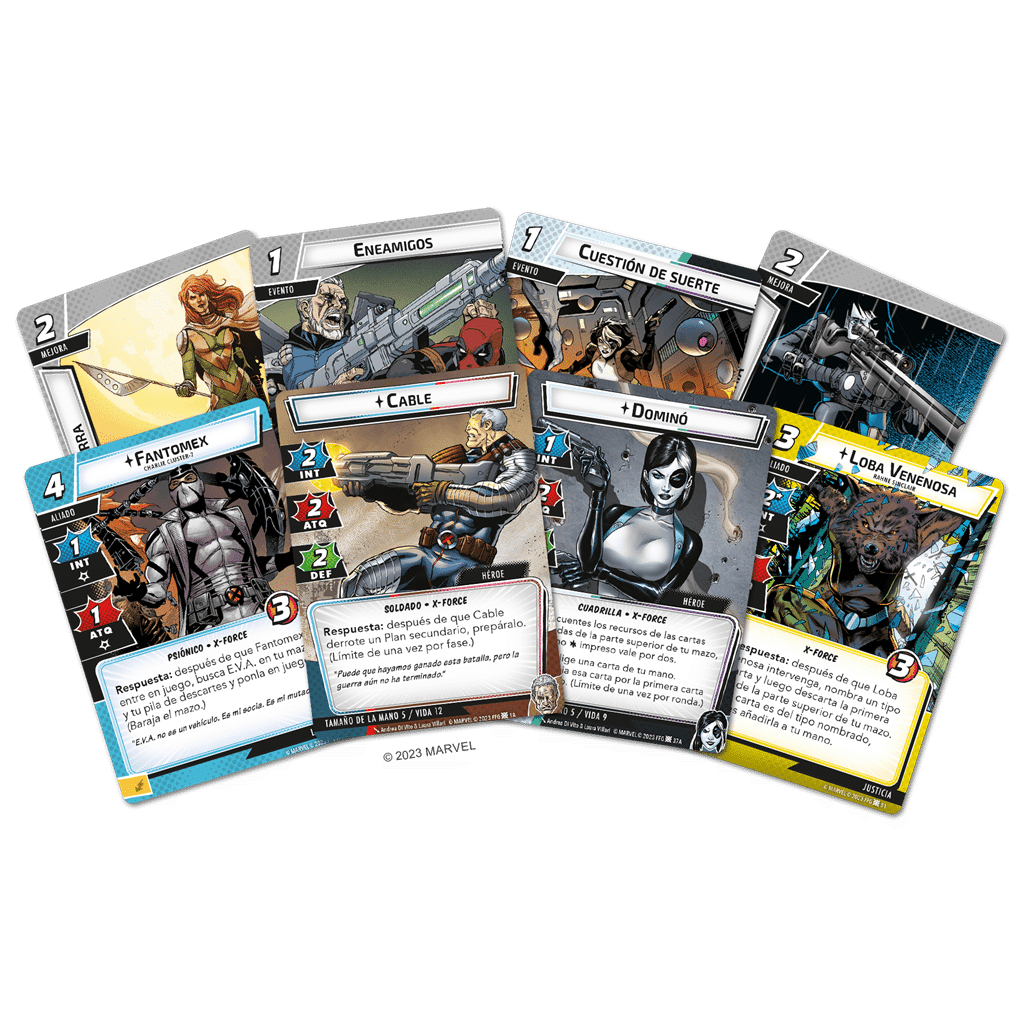 Esta caja de expansión contiene 260 cartas que introducen al grupo X-Force en Marvel Champions: El juego de cartas, además de un nuevo tipo de carta: ¡Planes secundarios de jugadores! Ahora los héroes también podrán completar sus propios objetivos para incrementar su poder y aventajar al villano. La próXima evolución presenta cinco escenarios nuevos conectados entre sí que os llevarán a descubrir quién está tras el secuestro de Hope Summers, la hija adoptiva de Cable, y qué pretende hacer con ella. ¿Conseguiréis frustrar sus diabólicos planes y salvar a Hope?