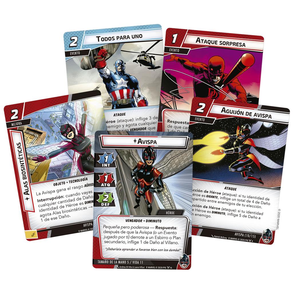 A partir de las mismas capacidades cambiantes que Ant-Man, Wasp demuestra contar con sus propias y personalísimas tácticas que priorizan una preparación cuidadosa para poder ejecutar sus planes sin problemas y finalmente asestar el golpe maestro. Este pack de Héroe incluye un mazo pregenerado de 40 cartas con el aspecto Agresividad listo para poder jugar directamente. Tanto si estás deseando entrar en acción como Wasp como si quieres añadir nuevas cartas a tus otros Héroes, verás que hay mucho con lo que poder disfrutar en esta expansión.